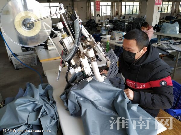鳳臺經濟開發區建立復工申請審批制度和復工企業清單制度,為每家復工企業安排2名工作人員作為聯絡員,幫助企業嚴格按照復工審批流程和復工管理細則認真落實。截至2月18日,鳳臺經開區已有19家企業復工復產,生產、防疫秩序正常。圖為園區制衣企業復工生產防護服。 (通訊員 王 暉)