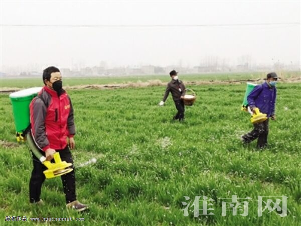 鳳臺縣新集鎮防疫春耕兩手抓,全鎮廣大群眾不等不靠,在做好防疫的同時,積極開展保春耕促生產,在田間地頭奏響了一首春耕曲。圖為2月26日,新集鎮瑞耕糧食種植合作社正在給小麥追施返青肥。(通訊員 陳明)
