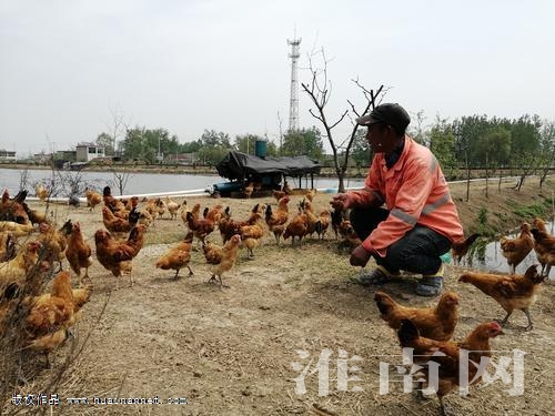為了增加收入,徐圣杰向駐村扶貧工作隊介紹了想在蝦塘養雞的想法,得到了駐村扶貧工作隊和村支兩委的支持。今年3月,徐圣杰自己出資一部分,村里又為他申請了一部分財政補貼,就在蝦塘散養了300多只雞。徐圣杰沿著蝦塘走去,一聲召喚,一只只雞都向他飛奔而來,圍在他身邊。“每只雞現在有一二斤重,等再過四五個月就能上市了。”徐圣杰說。
