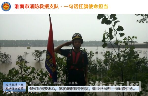 22日,面對滔天洪水和翹首以盼的行洪區數十萬人民群眾,奮戰在大壩、莊臺抗洪搶險一線的淮南百名消防指戰員,利用戰斗間隙,通過“視頻連線 一句話”的形式,用平實而堅定的話語,向黨組織表決心,讓行洪區群眾得安心,讓家屬放寬心。