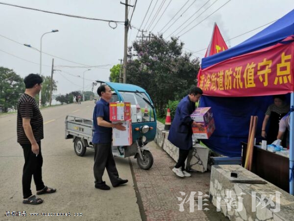 前方有一線工作人員及志愿者無休作戰,后方有愛心企業及愛心人士支援助力,7月21日,田家庵區個協黨總支東城黨支部書記徐海榮,淮南柒捌玖餐飲管理有限公司總經理徐建軍,民革田區四支部張志敏、陳惠敏,淮南紅十字會張志敏志愿者服務隊湯本懷,金太陽社區愛心人士,向淮濱街道金太陽社區防汛值守點獻愛心,累計捐贈礦泉水55件、方便面12件、盒飯12份、擋雨棚1頂、西瓜10個、毛巾20條、風油精8瓶、面包2件。物資有限,但關愛無限。每一份物資,皆滿載著愛心企業及愛心人士們對防汛搶險工作的關心與支持!我們始終相信,有廣大黨員、志愿者、社會愛心人士及群眾的鼎力相助,一定能打贏2020年防汛救災這場硬仗。給廣大群眾一個滿意的答卷!