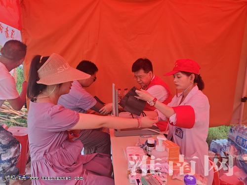 在嚴峻的防汛形勢下,石姚灣退建堤基本每500米就有一個防汛值守點,每天大約有200多人在堤壩上。在風吹日曬雨淋的環境下,防汛人員身體極易疲勞,免疫力有所下降,不少工作人員出現了皮疹、腹瀉、中暑、高血壓等癥狀,被蚊蟲叮咬更是家常便飯。7月25日,服務站的帳篷搭好,幾名醫生拉起了志愿服務的旗幟,即刻投入到工作中。“醫生,我這幾天拉肚子,有沒有止瀉藥?”“我腿上長疹子了,醫生能不能幫我看一下?”……正在巡堤的隊員看到醫療隊來了紛紛上前詢問。醫生們一刻不閑著,為防汛人員量血壓、消毒,送外傷、中暑、感冒等藥品,并反復叮囑藥用事項。