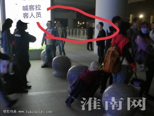 圖:在淮南南站出站口,一些人進行喊客拉客