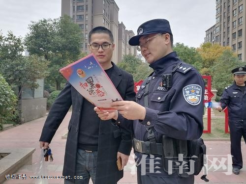 “大姐,最近電信網絡詐騙犯罪猖獗,這是分局印制的《致轄區居民防范電信詐騙的一封信》,請您仔細看看,做好自我防范。”11月6日上午9時,淮河新城四期的小廣場上,三名身穿制服的民(輔)警正一邊給居民發放宣傳彩頁,一邊向他們介紹我市掃黑除惡工作及電信詐騙防范要領。