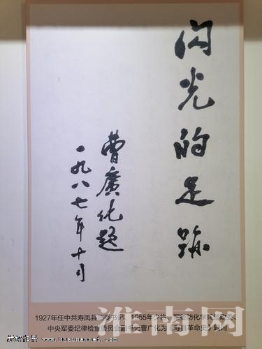 圖二:曹廣化為《壽縣革命史題詞》,現(xiàn)陳列于小甸鎮(zhèn)壽縣革命烈士事跡陳列室。(記者 柏雪 王偉)
