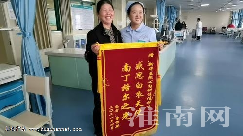 “當(dāng)時(shí)得知她是新華醫(yī)院的護(hù)士,不知道叫什么名字,也不知道是哪個(gè)科的。”陳女士介紹,在曹先生脫離了危險(xiǎn)期后,他們一家開(kāi)始尋找公交車上救人的護(hù)士。幾經(jīng)周折才得知,原來(lái)救人的護(hù)士繆佳佳就在曹先生所住的心血管內(nèi)科四樓病區(qū)。為表示感謝,曹先生一家特意制作了一面錦旗送給這位人美心善的護(hù)士。