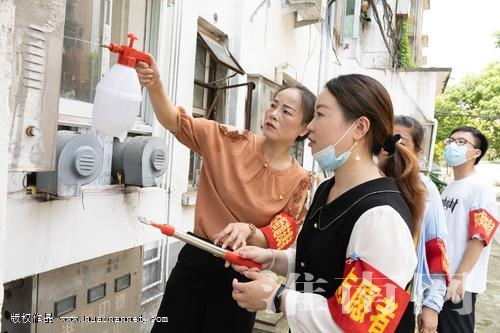 上午9時,在之前已經摸排過樓棟的消防器材是否過期、缺損的基礎上,工作人員一路穿街走巷地更換消防器材。一路行來,袁華莉看到有的車輛停的位置沒有劃停車線,便安排工作人員前去摸排咨詢居民,打算等下午地面干燥后,補劃停車線。在路上,看到墻上貼了一些小廣告,工作人員順手使用手上的工具給清理了。
