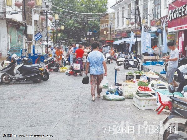 還有一些門面房店主則把商品直接搬到了店外,占用門口的一大片地方。淮河早報、淮南網記者在一家賣蔬菜的店鋪門前看到,菜筐從店門前一直延伸到小街路中央,粗略數了一下,至少擺了二三十個筐子。