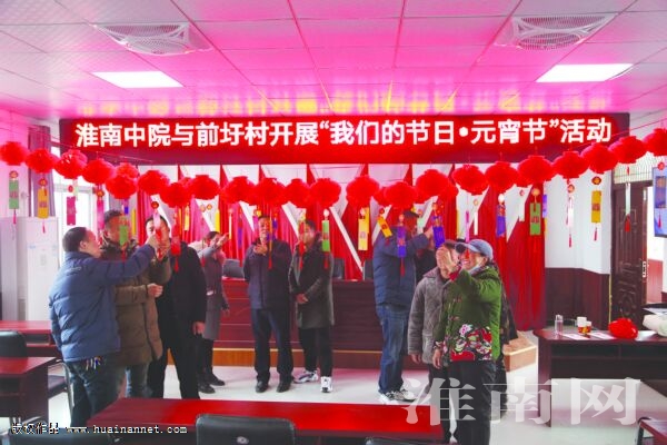 在新樂社區,新時代文明實踐站張燈結彩,居民們與淮南中院干警賞花燈、猜燈謎,遇到難題還相互提示討論,現場氣氛熱烈,節奏明快,歡笑聲使活動現場充滿濃濃的節日氛圍。在前圩村,淮南中院鄉村振興駐村工作隊、村委會為村民準備了“民間故事、歷史典故、掃黑除惡和鄉村振興”等近百條謎語,吸引村民競猜,一條條五彩的謎面給大家帶來了紅紅火火的喜慶感受。有人對著燈謎皺眉沉思,有人猜對了謎題有序換取獎品,節日的幸福喜悅之情溢于言表。