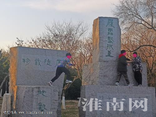 春節的龍湖公園,吸引了大量游客。公園的石陣文化園里,一群孩子爬到巨石上跳來跳去,十分危險。記者呼吁公園加強管理,家長們也要看管好孩子,文明游玩、安全游玩。(記者 攝影報道)