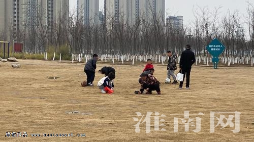 近日,在淮河公園的草地上,淮河早報、淮南網(wǎng)記者看到,很多孩子在草坪上踢球,還有幾個市民或是徒手或是用工具撿拾“地踏皮”。(記者)