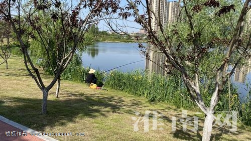 5月2日下午,高新區周集壩公園內, 湖水清清、綠植成蔭,少數游人在此休閑玩樂,而公園的湖邊,卻有兩名市民不顧豎立的禁止垂釣標志,在此釣魚。(記者 攝)