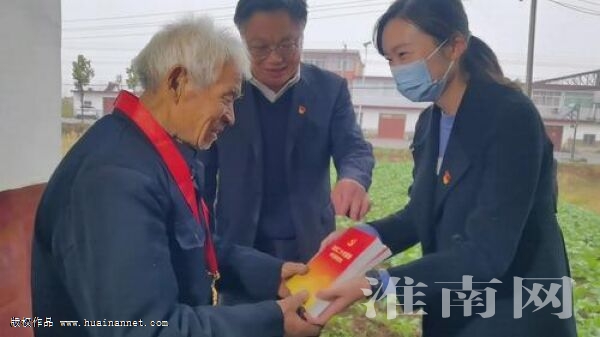 當天下午的活動中,夏曉丹和安徽理工大學外國語學院相關負責人、安徽理工大學駐村工作隊成員等走訪慰問了村內兩名“光榮在黨50年”老黨員,為老黨員“送學上門”,向他們宣講黨的二十大精神,并贈送二十大學習輔導資料等。