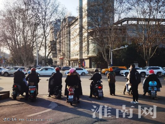 在城市道路上、背街小巷里,都能看到市民騎電動自行車戴頭盔出行。洞山中路被稱為淮南的“文明大道”,1月31日早上,在出行高峰時(shí)段,淮河早報(bào)、淮南網(wǎng)記者在“文明大道”旁觀察看到,在非機(jī)動車道上騎行的電動自行車駕駛?cè)硕甲杂X佩戴著頭盔。在洞山中路與廣場南路交叉口,人員車輛匯集于此,在路口等紅燈的人群中,不僅騎行者佩戴頭盔,坐在后面的人也戴著頭盔。