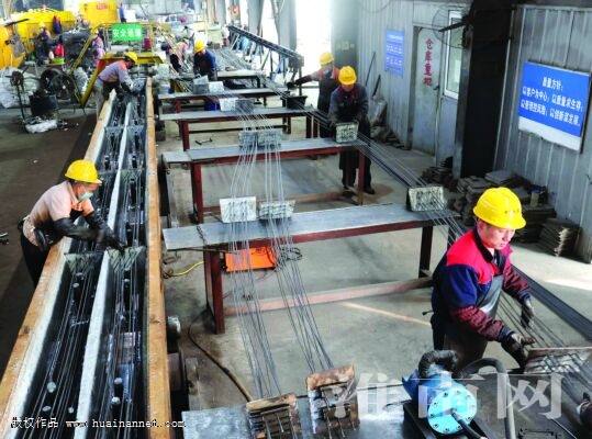 2月4日,安徽中志軌道交通裝備制造有限公司軌枕車間工人們正在加工訂單,一派繁忙的生產(chǎn)景象。據(jù)了解,該公司投資3億元的二期生產(chǎn)線正在建設(shè),總面積約41000平方米,新建軌枕生產(chǎn)線一條、高鐵配套產(chǎn)品生產(chǎn)線一條、鐵路專用線2公里。項(xiàng)目建成后,將形成年產(chǎn)軌枕40萬(wàn)根、岔枕500組、高鐵配套產(chǎn)品10000噸的生產(chǎn)能力,年銷售收入增加1.5億元。(記者 倪軍 通訊員 胡鋒 王保松 攝)