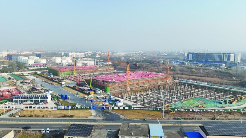 圖為曹庵鎮鄉村振興生態智慧產業園項目建設現場鳥瞰。 (記者 張明星 攝)