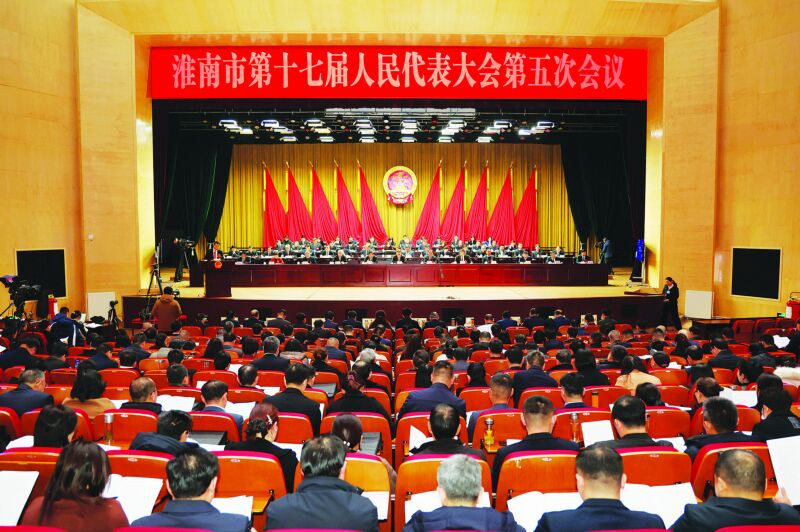 1月12日上午,淮南市第十七屆人民代表大會第五次會議在市政務中心召開。 (記者 張 越 陳海濤 攝)
