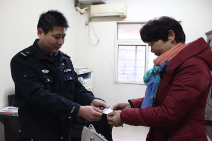 圖一:李方乾送給群眾一張“警民聯(lián)系卡”