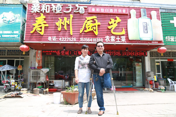 2001年,白色家電銷售進入微利時代,朱士兵偶爾從朋友那里聽說轉賣葡萄干可以掙錢的商機后,借貸100余萬元在合肥開了一家經營葡萄干、瓜子、核桃等干貨的食品公司。公司開張后,朱士兵拄著拐杖一年到頭全國各地跑業務,漸漸的他在市場中站穩了腳跟,年銷售額一度超過2000余萬元。2008年因女兒上學需要,朱士兵夫婦告別省城,回到家鄉壽縣,并于2014年在縣城的明珠大道旁開了壽州廚藝酒店。為了做出特色,朱士兵的酒店走起綠色、土菜路線,其酒店葷菜原材料全部來自農家散養牲畜家禽,臘味也都是自家腌制。因不做“黑心菜”,食品安全衛生,價格公道,朱士兵的壽州廚藝酒店漸漸獲得食客肯定并多次受到工商等部門的表彰。