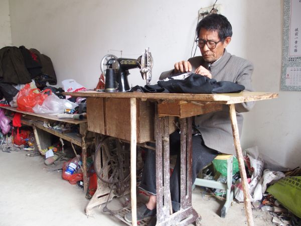 圖一:今年68歲的許圣杰眼睛早已老花,還得靠干縫紉活補貼家用。