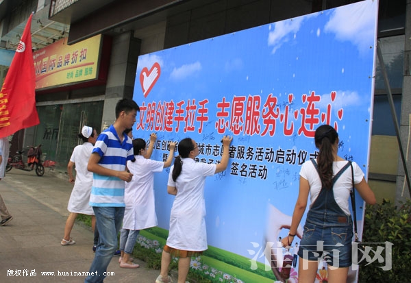 8月23日,八公山區(qū)舉行“文明創(chuàng)建手拉手 志愿服務心連心”主題志愿服務活動啟動儀式,標志著該區(qū)各志愿隊伍分片分類開展志愿服務活動開始。當天,100多名志愿者簽名表示要為創(chuàng)建省級文明城市貢獻力量,接下來,他們將開展義診、法律咨詢、文明勸導、環(huán)境清掃等多項志愿服務。