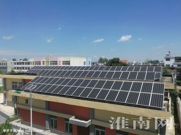 淮河早報、淮南網記者跟隨王安遠來到今年該村新建立的一座光伏電站。這座光伏電站位于村里一所學校的房頂,現已并網發電。王安遠向淮河早報、淮南網記者介紹,為了幫助村里貧困戶早日脫貧,村里今年實施了光伏扶貧項目,為包括王安松家在內的14戶貧困戶聯戶集中安裝了42KW光伏電站一座。“光伏電站每年售電收入再分給貧困戶,預計可幫助貧困戶每戶每年增加收入3000多元。”王安遠介紹道。