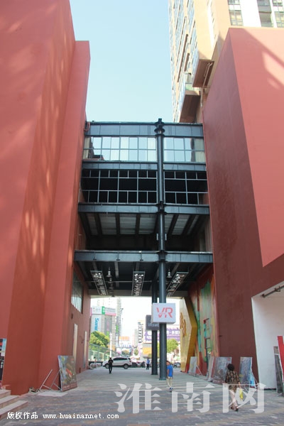 接電后,淮河早報、淮南網記者于9月18日上午來到世紀天成小區。在現場,淮河早報、淮南網記者看到,在南北兩棟樓之間,從二層頂端新搭建了三層鋼構結構的回廊,把兩棟樓房的三、四、五層連接了起來。這三層鋼構的空中回廊是由兩根大鐵柱支撐,南北兩端直接連接到兩邊樓房的外墻上,整個空中回廊主體已經完工,頂層已經安裝上玻璃。