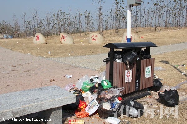對于淮河公園存在的問題,淮河早報、淮南網記者來到淮河公園管理辦。工作人員稱:“淮河公園剛建成,現在還沒有正式驗收和移交,市市政園林建設局臨時從龍湖公園抽調出四名工作人員,臨時對淮河公園進行管理。由于天氣轉暖,每天有大量市民前來游玩,尤其是雙休日,游人更多,大量游人產生了大量垃圾。由于目前并沒有環衛工人負責垃圾,我們只能使用垃圾袋將零散的垃圾撿拾起來,然后堆放在垃圾桶邊,統一清運。但是由于公園面積太大,四名工作人員根本無法把垃圾全部一次集中清運。而對于建設存在的問題,我們也不太了解,可以向市市政園林建設局了解詳細情況。”