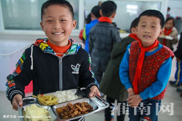 在壽縣八公山初級中學食堂門前,校長邢志海侃侃而談營養改善計劃給他們的孩子帶去了節約觀、秩序觀、團隊觀,一群又一群學生因此養成良好的就餐、衛生、不浪費、謙讓、互助、友愛等習慣。