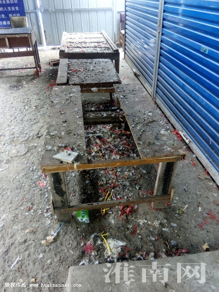 圖:活禽區(qū),雞鴨貨架上、地面上,殘留著大量的雞鴨糞便及羽毛。(淮河早報、淮南網(wǎng)創(chuàng)城報道組記者)