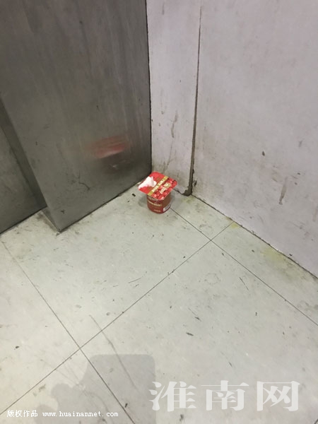 圖二:電梯間留下的酸奶盒(淮河早報、淮南網創城報道組 王玲 馬南南 編輯 湯寧)