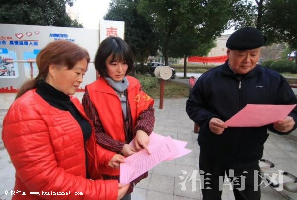 12月17日,淮南經開區龍池社區工作人員(中)向居民發放禁止燃放煙花爆竹的傳單,宣講移風易俗新風尚。隨著2019年1月1日《淮南市燃放煙花爆竹管理規定》實施日期日益臨近,我市各單位、社區加大宣傳力度,通過豐富多彩的形式引導市民自覺樹立“禁放”理念。(記者 張越 編輯 湯寧)
